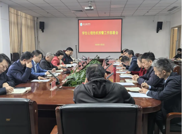 为精准掌握学生心理状况,复盘反思近期心理危机事件,全面提升心理健康教育与危机预警干预工作质量,我校专题召开 2025 年学生心理危机预警工作部署会。会议由学生工作处负责人赵新主持,学校党委委员、副校长周清平、各二级学院书记、副书记及心理教育中心主任郑勇军、副主任叶绿素及心理教育中心全体人员参加会议。