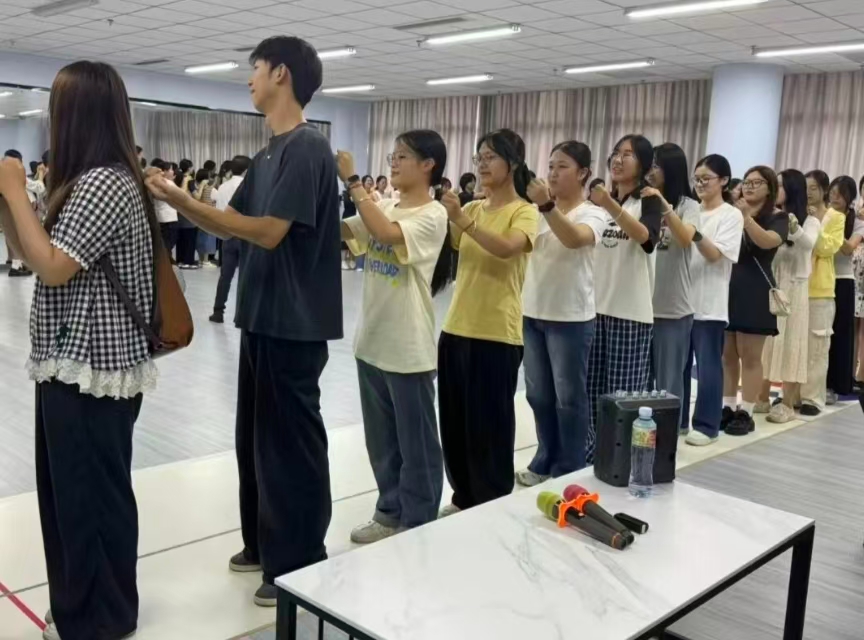 “信息传递”时,在一来一往的复述与倾听中,我们记住了彼此的家乡与爱好;“相互夸夸”环节,那些“你分享时眼睛亮亮的”“你做事很稳”的真诚评价,更是让每个人都感受到被关注的温暖。而设计小组口号、哼唱歌曲的过程里,大家主动表达、认真倾听,在协作中把“陌生人”变成了能并肩欢笑的同伴。